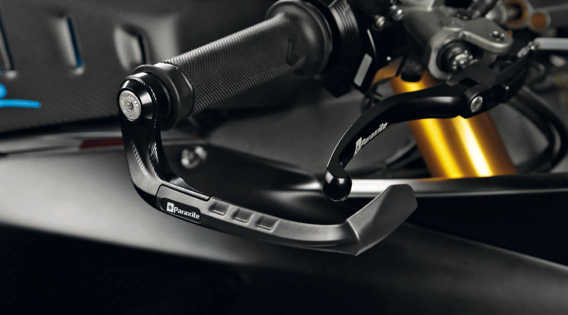 Protezione leva freno in alluminio anodizzato e materiale termoplastico composito in fibra di vetro che ne garantisce una rigidità e resistenza superiore. Un set di espansioni permette il montaggio su tubolari con diametro da 14 a 19,5 millimetri, dettaglio colorato personalizzabile in 7 colori.