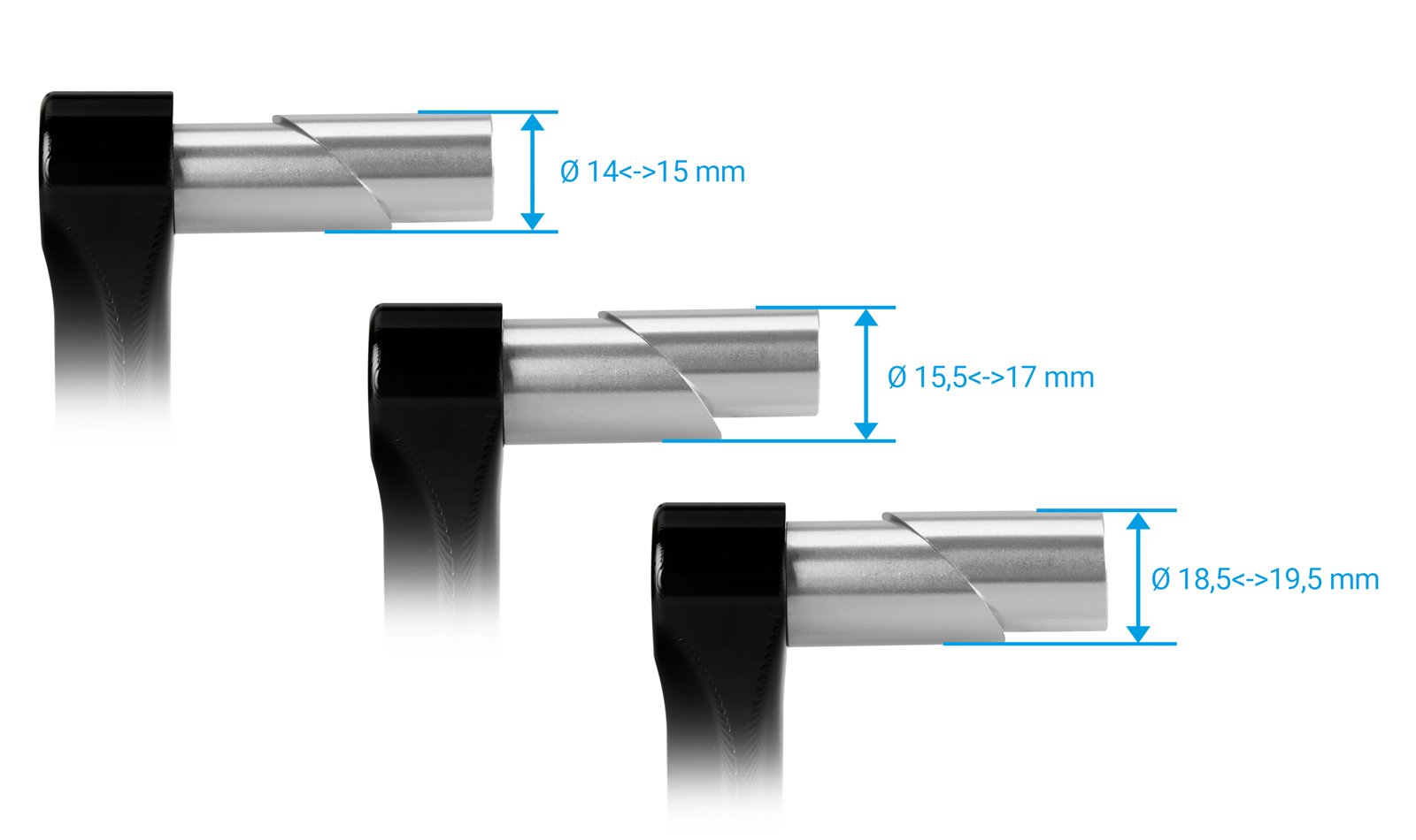 Protezione leva freno in alluminio anodizzato lavorato dal pieno su centri di lavoro CNC. Un set di espansioni permette il montaggio su tubolari con diametro interno da 14 a 19.5 millimetri.