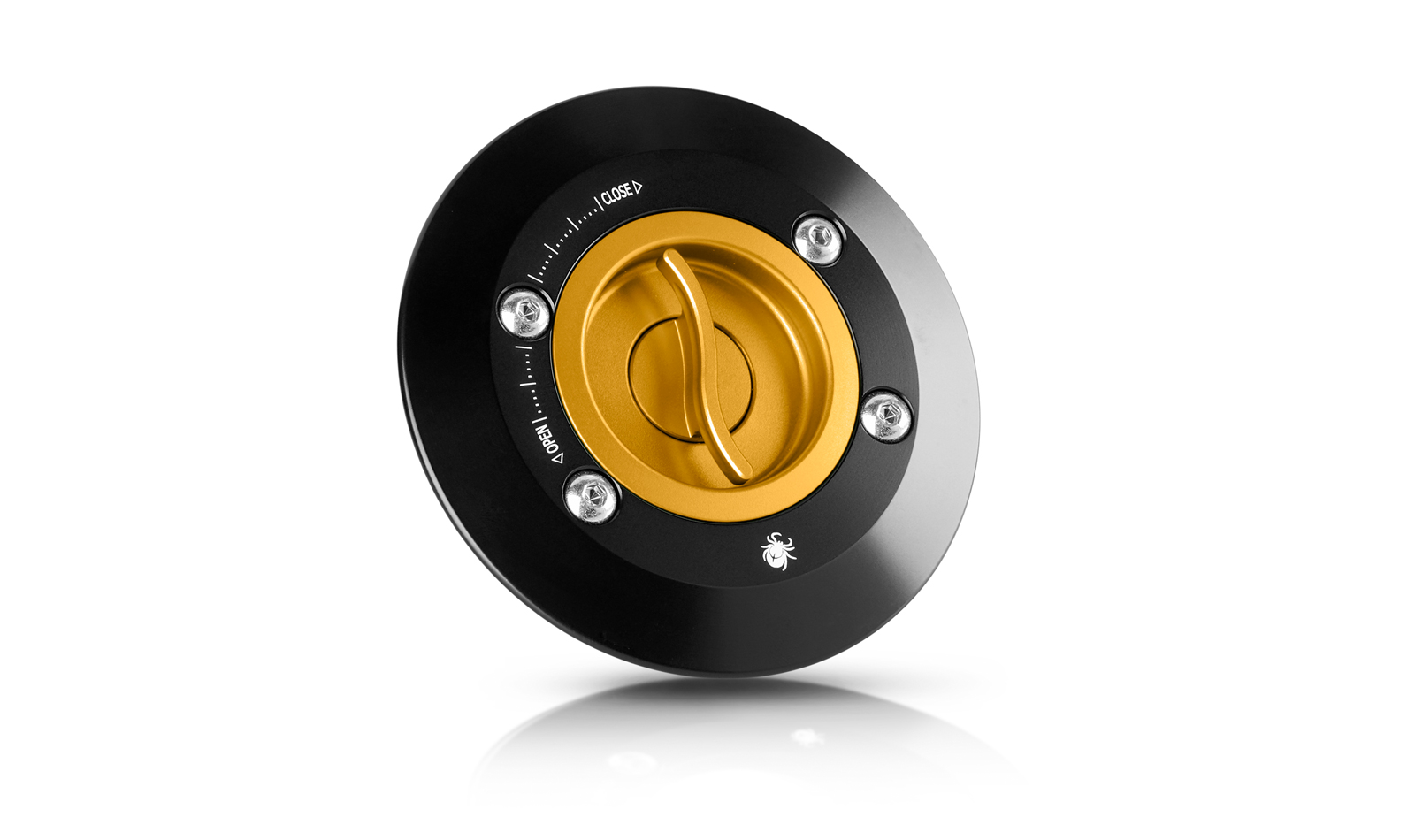 La chiusura a sgancio rapido (senza chiave) per il tappo del serbatoio carburante viene lavorata dal pieno tramite macchine a controllo numerico. Viene successivamente sottoposta al processo di anodizzazione dura superficiale. La chiusura per il tappo del serbatoio sostituisce senza bisogno di modifiche quella originale. Nota: prodotto compatibile con le flange serbatoio Paraxite.