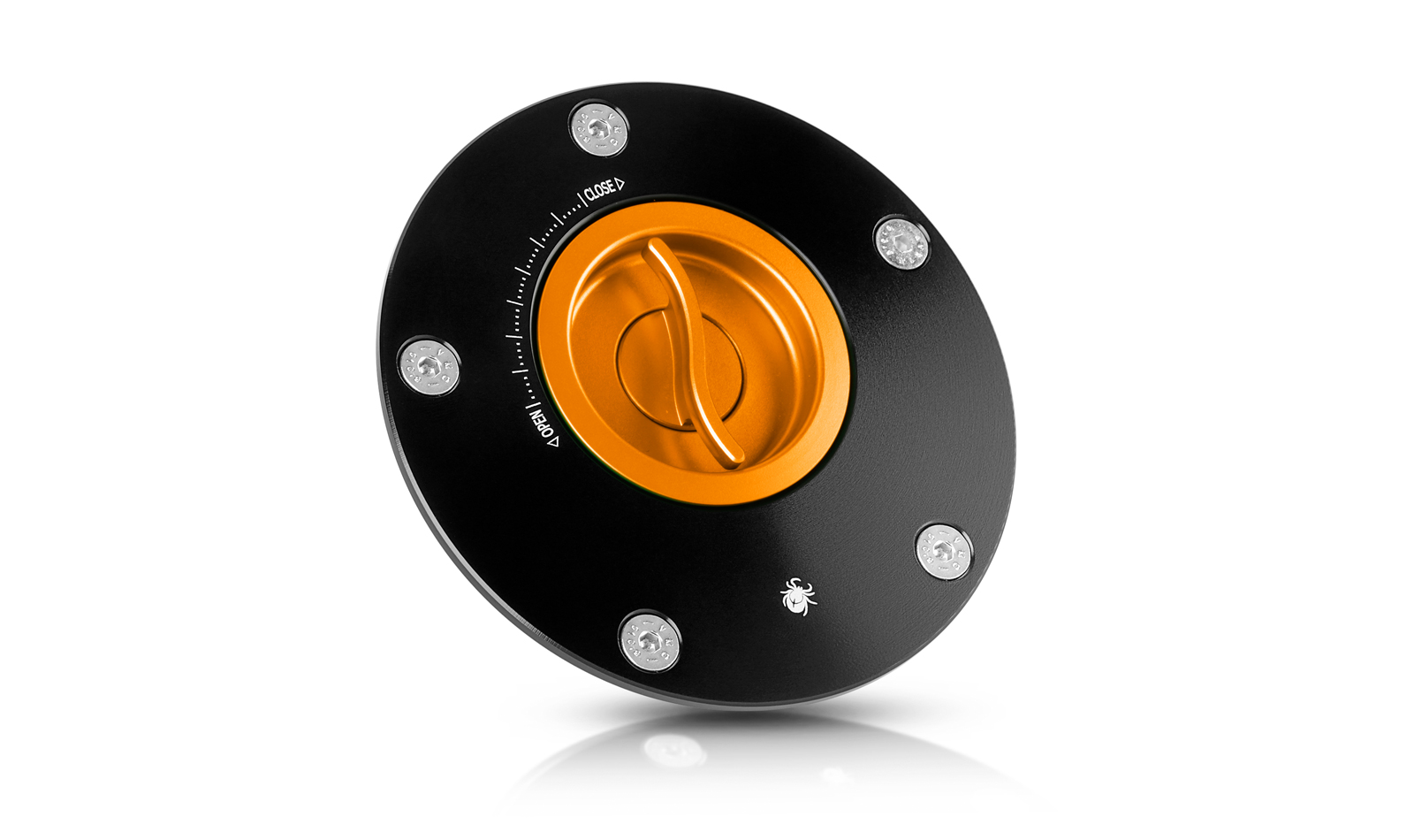 La chiusura a sgancio rapido (senza chiave) per il tappo del serbatoio carburante viene lavorata dal pieno tramite macchine a controllo numerico. Viene successivamente sottoposta al processo di anodizzazione dura superficiale. La chiusura per il tappo del serbatoio sostituisce senza bisogno di modifiche quella originale. Nota: prodotto compatibile con le flange serbatoio Paraxite.