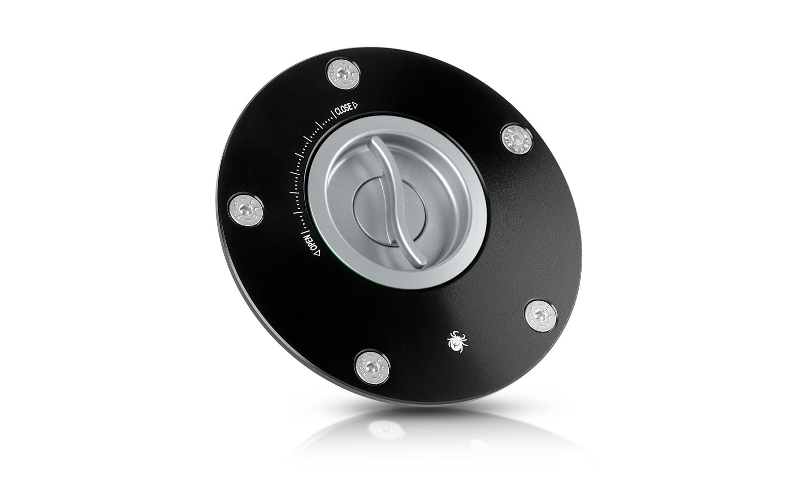 La chiusura a sgancio rapido (senza chiave) per il tappo del serbatoio carburante viene lavorata dal pieno tramite macchine a controllo numerico. Viene successivamente sottoposta al processo di anodizzazione dura superficiale. La chiusura per il tappo del serbatoio sostituisce senza bisogno di modifiche quella originale. Nota: prodotto compatibile con le flange serbatoio Paraxite.
