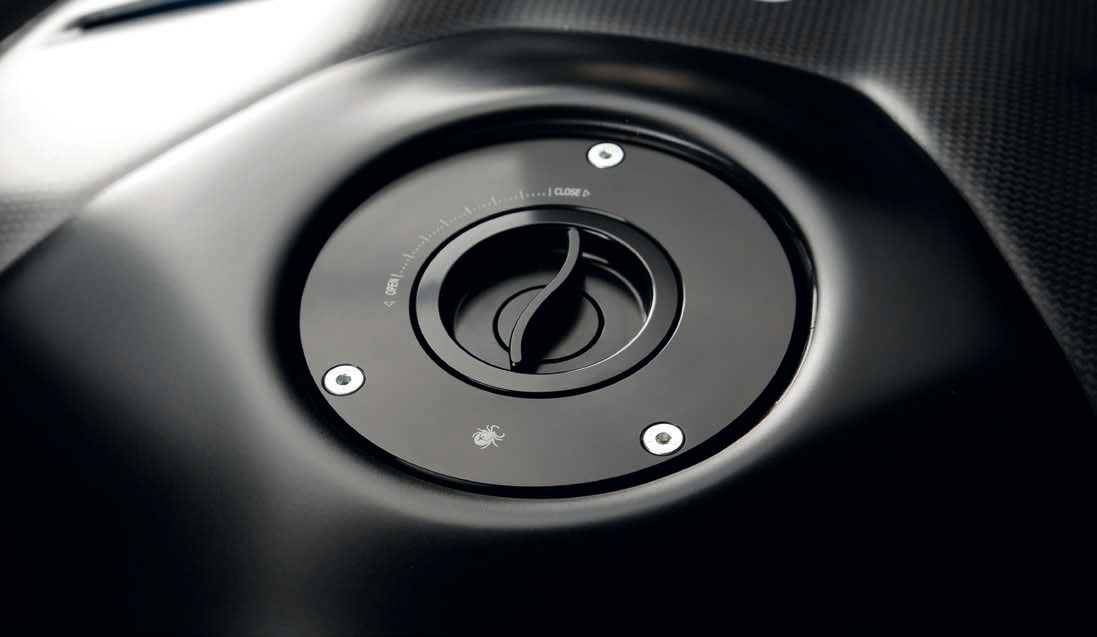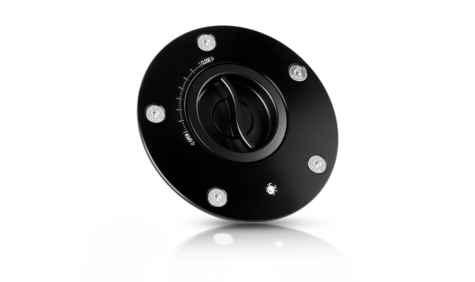 La chiusura a sgancio rapido (senza chiave) per il tappo del serbatoio carburante viene lavorata dal pieno tramite macchine a controllo numerico. Viene successivamente sottoposta al processo di anodizzazione dura superficiale. La chiusura per il tappo del serbatoio sostituisce senza bisogno di modifiche quella originale. Nota: prodotto compatibile con le flange serbatoio Paraxite.