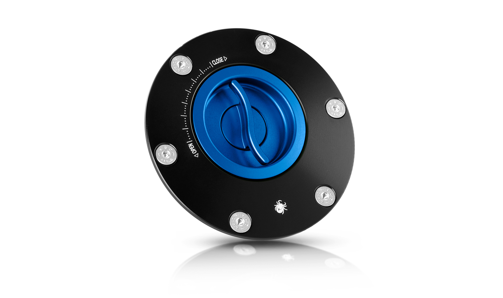 La chiusura a sgancio rapido (senza chiave) per il tappo del serbatoio carburante viene lavorata dal pieno tramite macchine a controllo numerico. Viene successivamente sottoposta al processo di anodizzazione dura superficiale. La chiusura per il tappo del serbatoio sostituisce senza bisogno di modifiche quella originale. Nota: prodotto compatibile con le flange serbatoio Paraxite.