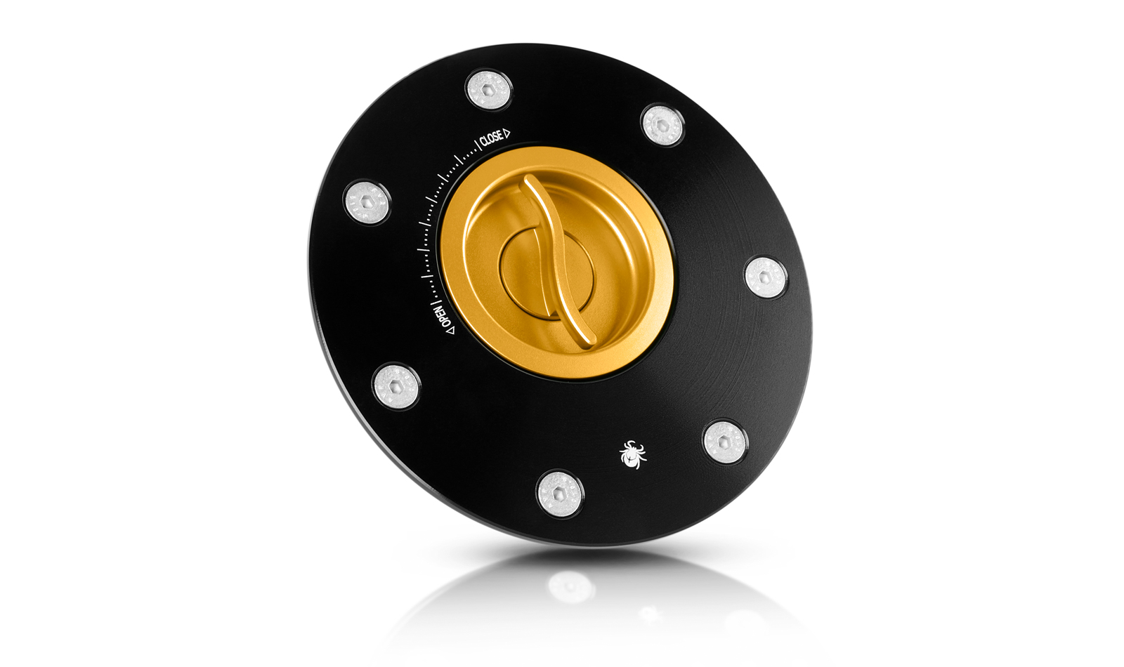 La chiusura a sgancio rapido (senza chiave) per il tappo del serbatoio carburante viene lavorata dal pieno tramite macchine a controllo numerico. Viene successivamente sottoposta al processo di anodizzazione dura superficiale. La chiusura per il tappo del serbatoio sostituisce senza bisogno di modifiche quella originale. Nota: prodotto compatibile con le flange serbatoio Paraxite.