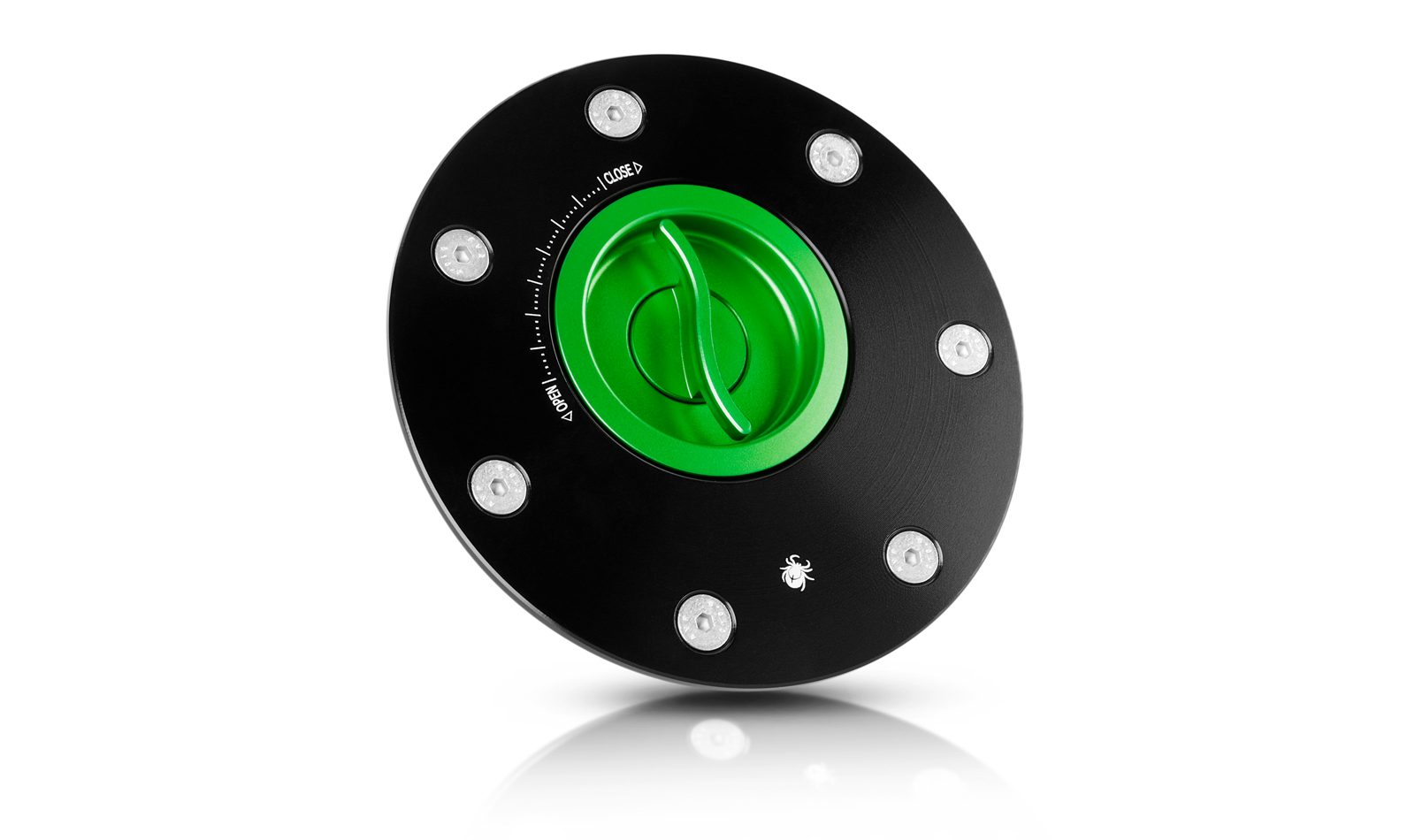 La chiusura a sgancio rapido (senza chiave) per il tappo del serbatoio carburante viene lavorata dal pieno tramite macchine a controllo numerico. Viene successivamente sottoposta al processo di anodizzazione dura superficiale. La chiusura per il tappo del serbatoio sostituisce senza bisogno di modifiche quella originale. Nota: prodotto compatibile con le flange serbatoio Paraxite.